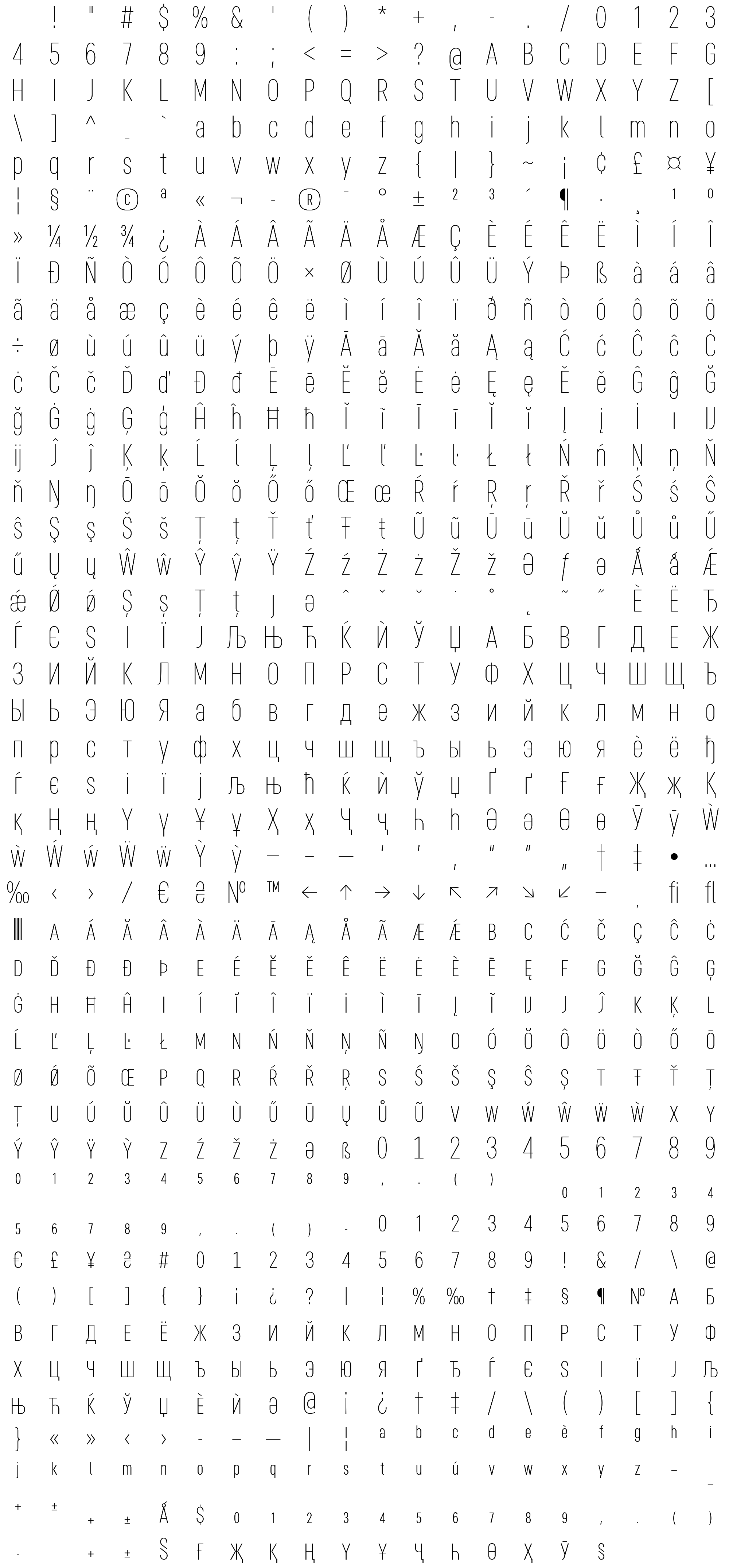 Due to the nature of thumbs' generation process, some of the glyphs in the glyph map may appear cropped.