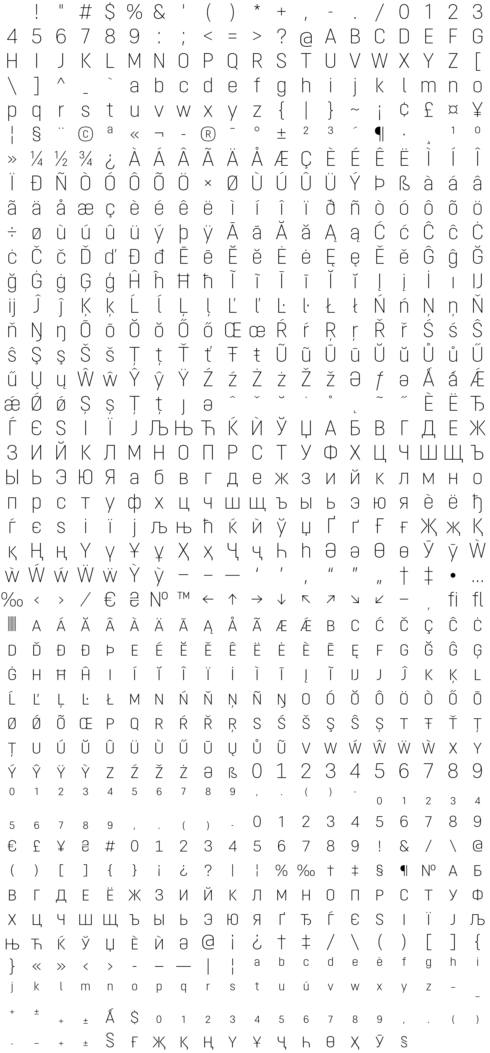 Due to the nature of thumbs' generation process, some of the glyphs in the glyph map may appear cropped.