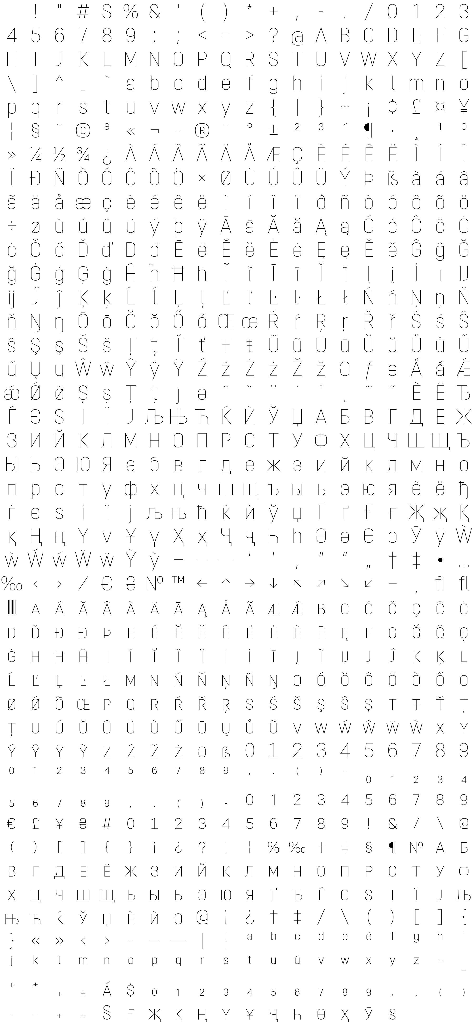 Due to the nature of thumbs' generation process, some of the glyphs in the glyph map may appear cropped.