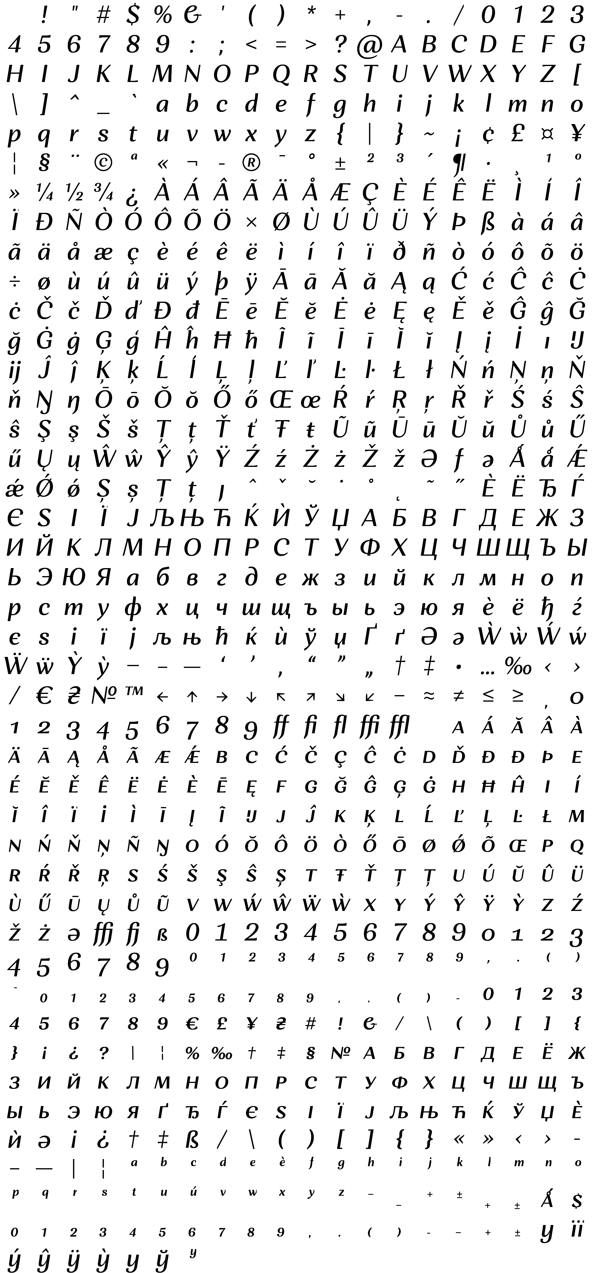 Due to the nature of thumbs' generation process, some of the glyphs in the glyph map may appear cropped.