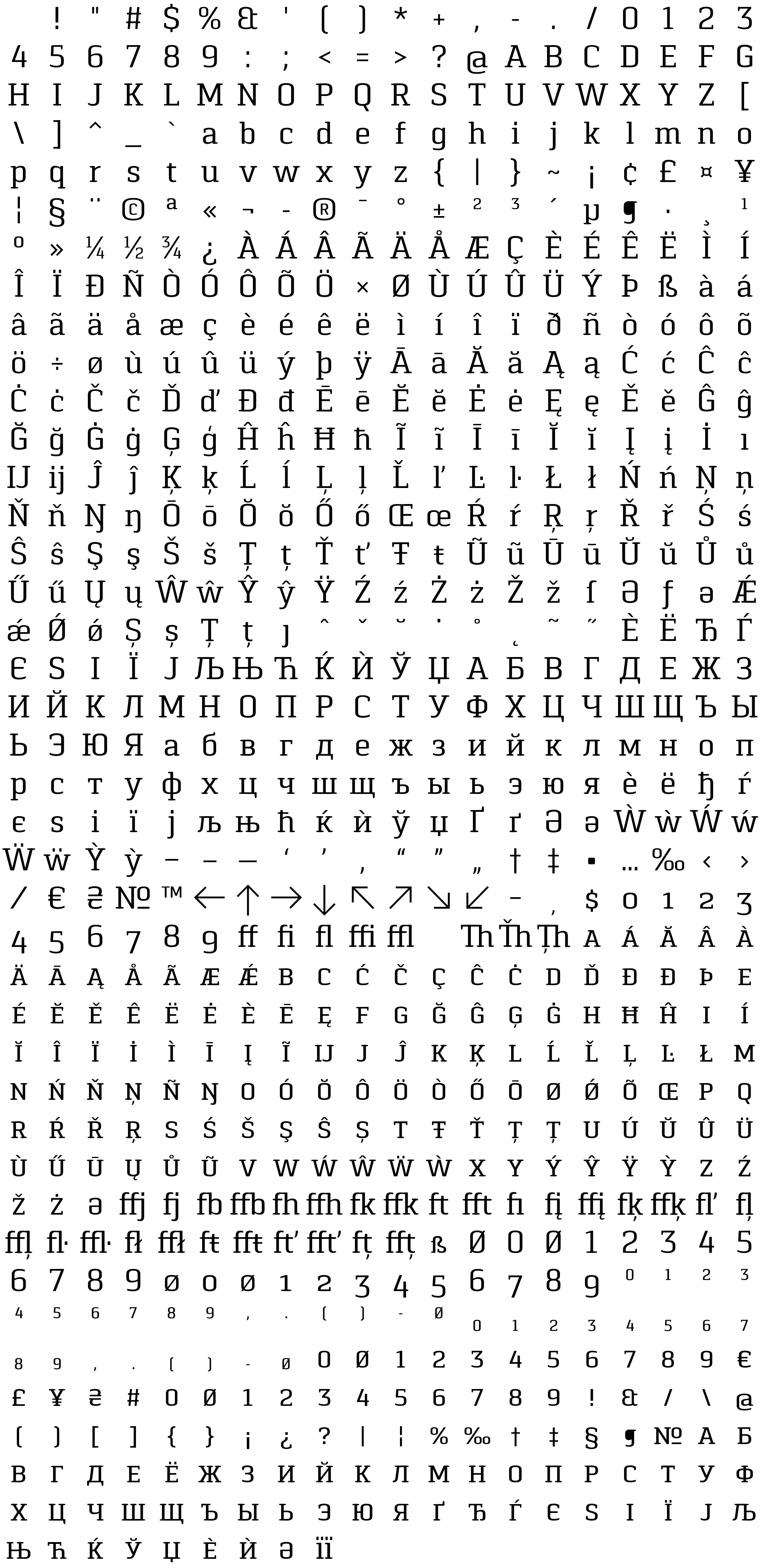Due to the nature of thumbs' generation process, some of the glyphs in the glyph map may appear cropped.