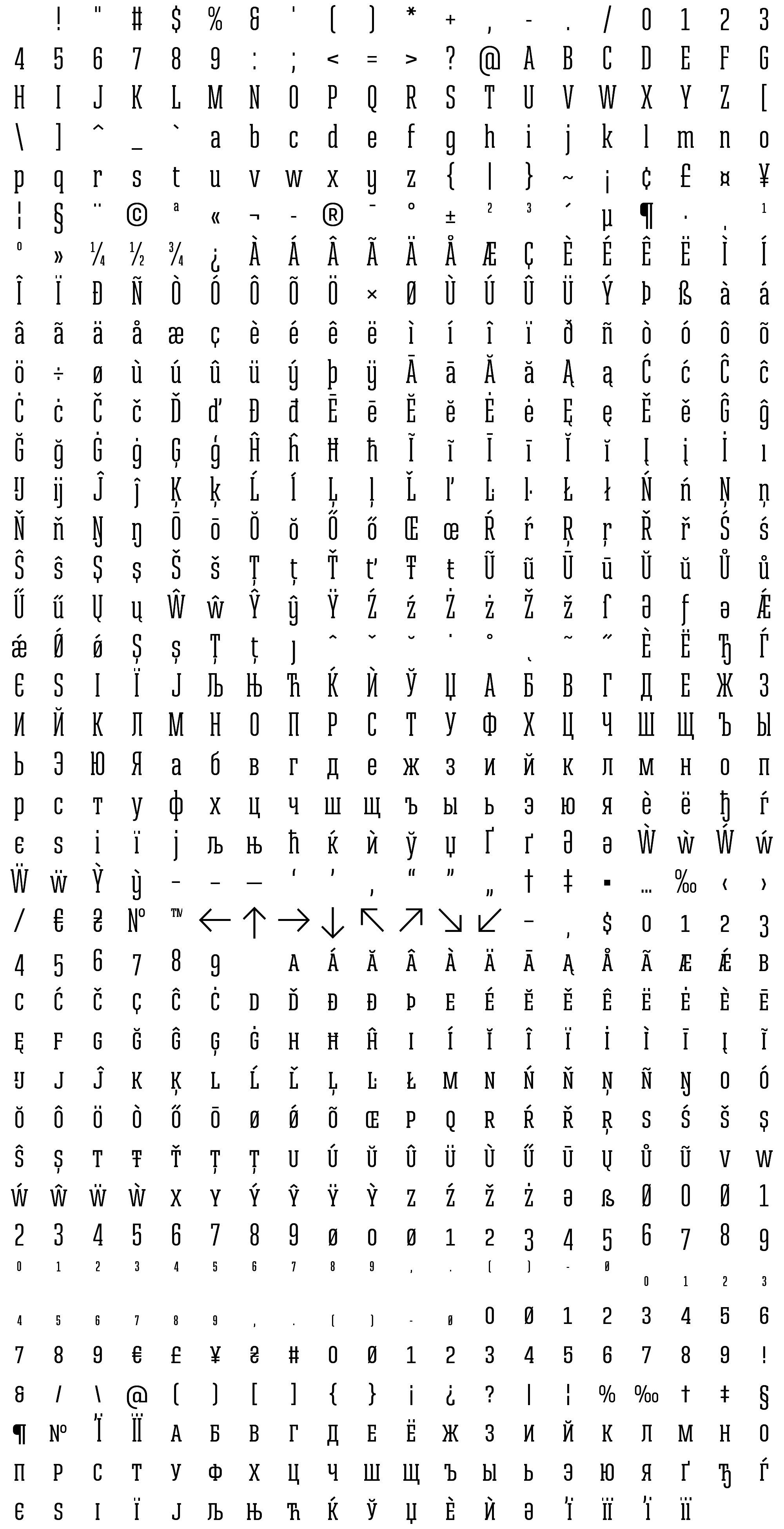 Due to the nature of thumbs' generation process, some of the glyphs in the glyph map may appear cropped.