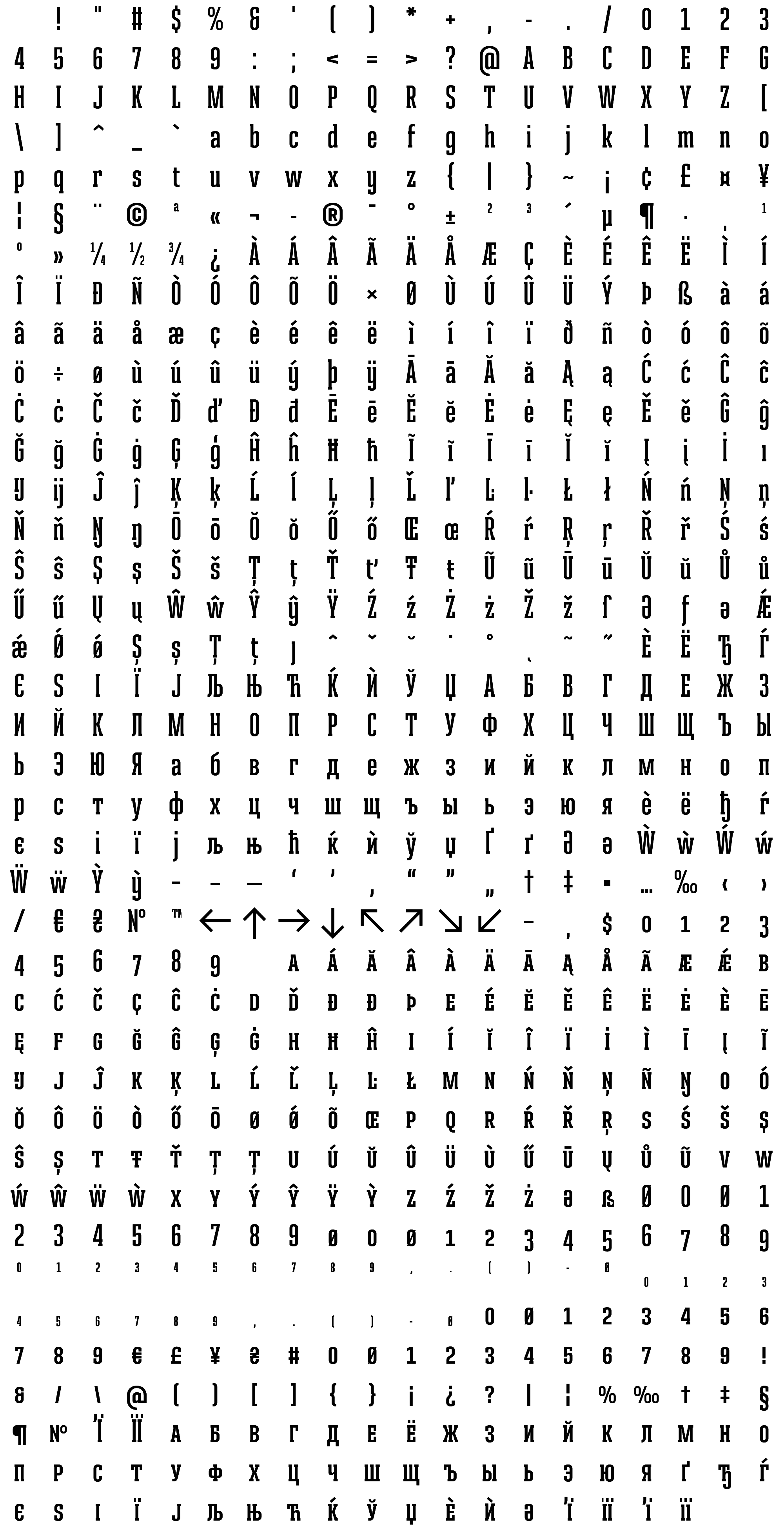 Due to the nature of thumbs' generation process, some of the glyphs in the glyph map may appear cropped.