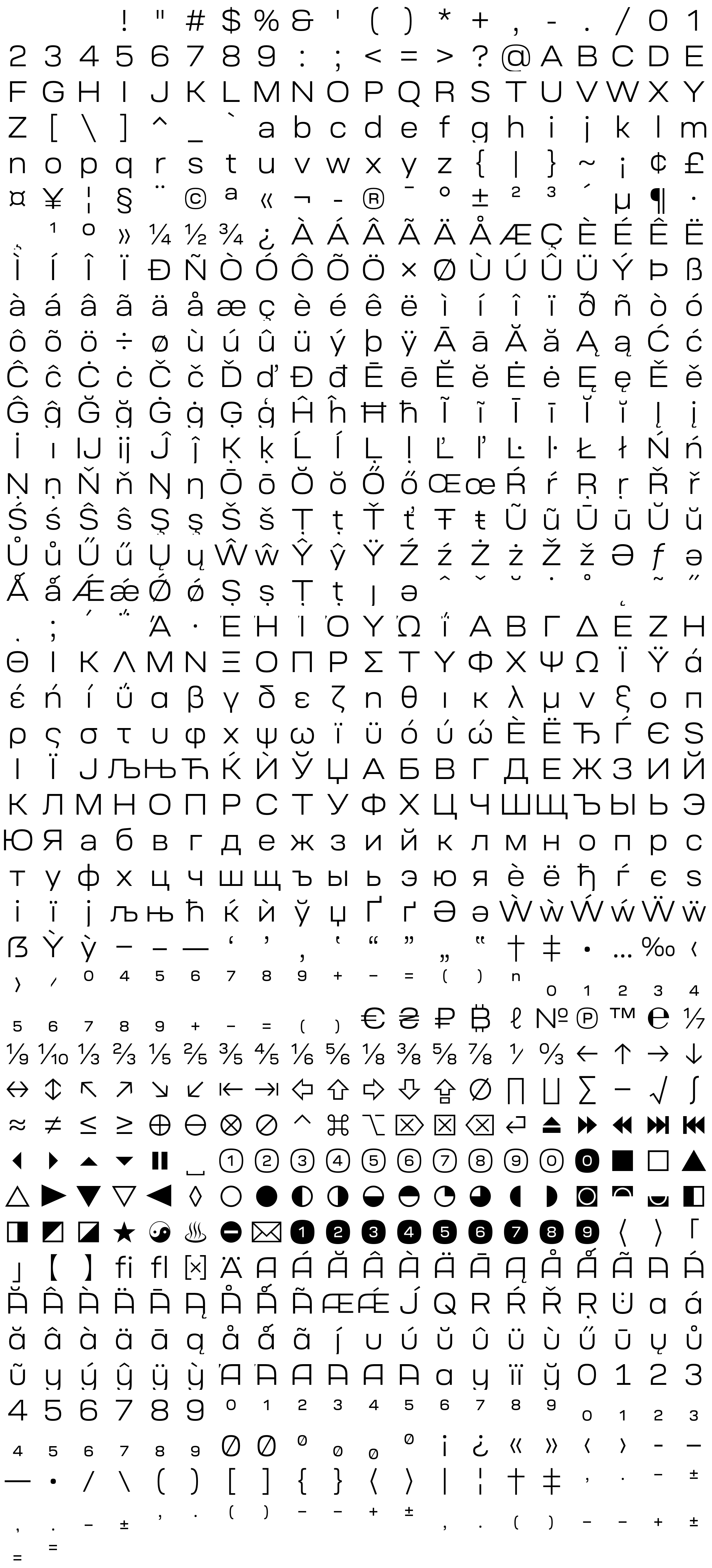 Due to the nature of thumbs' generation process, some of the glyphs in the glyph map may appear cropped.