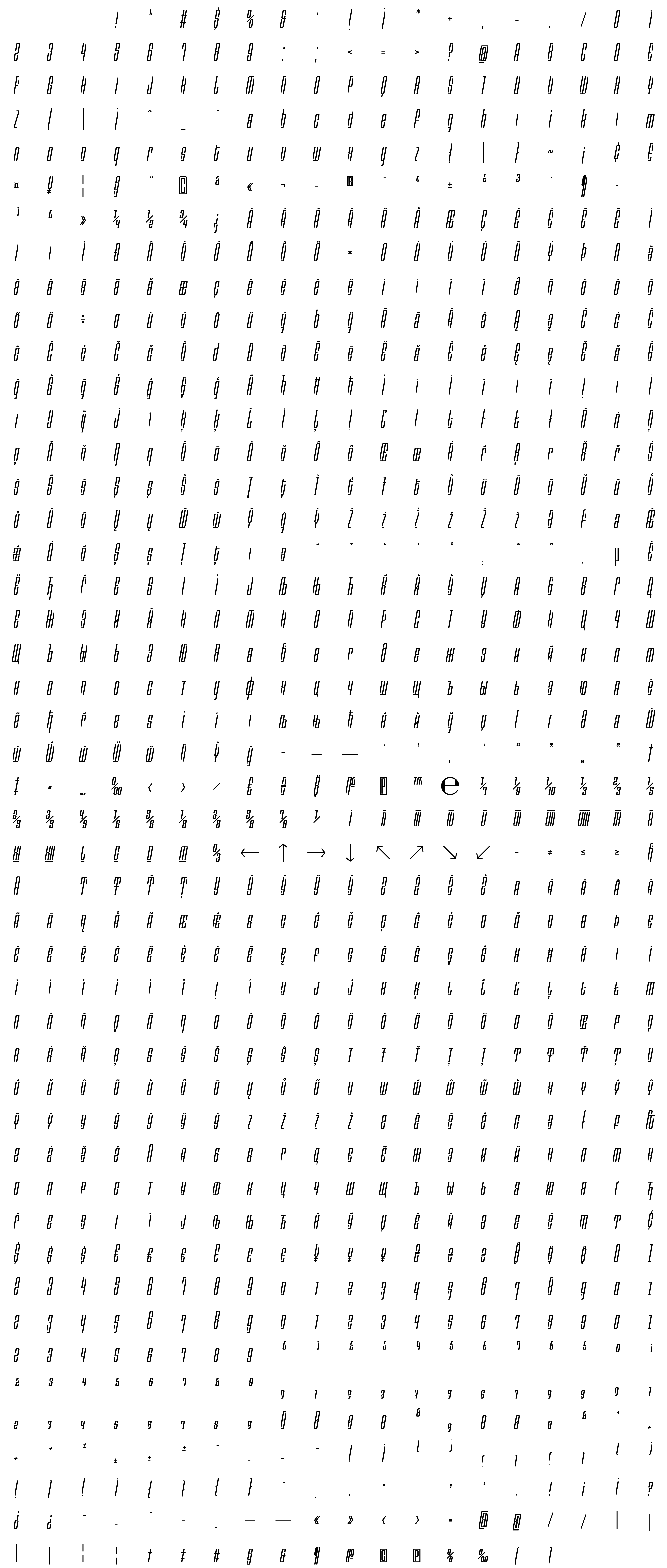 Due to the nature of thumbs' generation process, some of the glyphs in the glyph map may appear cropped.