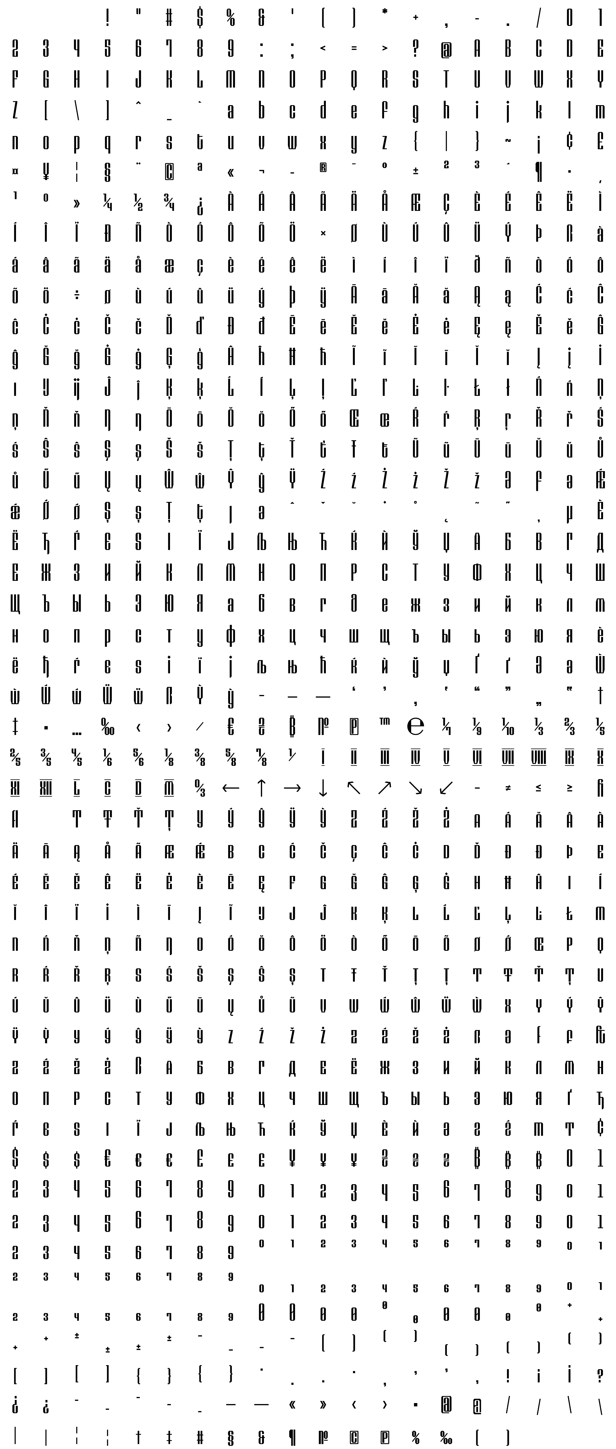 Due to the nature of thumbs' generation process, some of the glyphs in the glyph map may appear cropped.