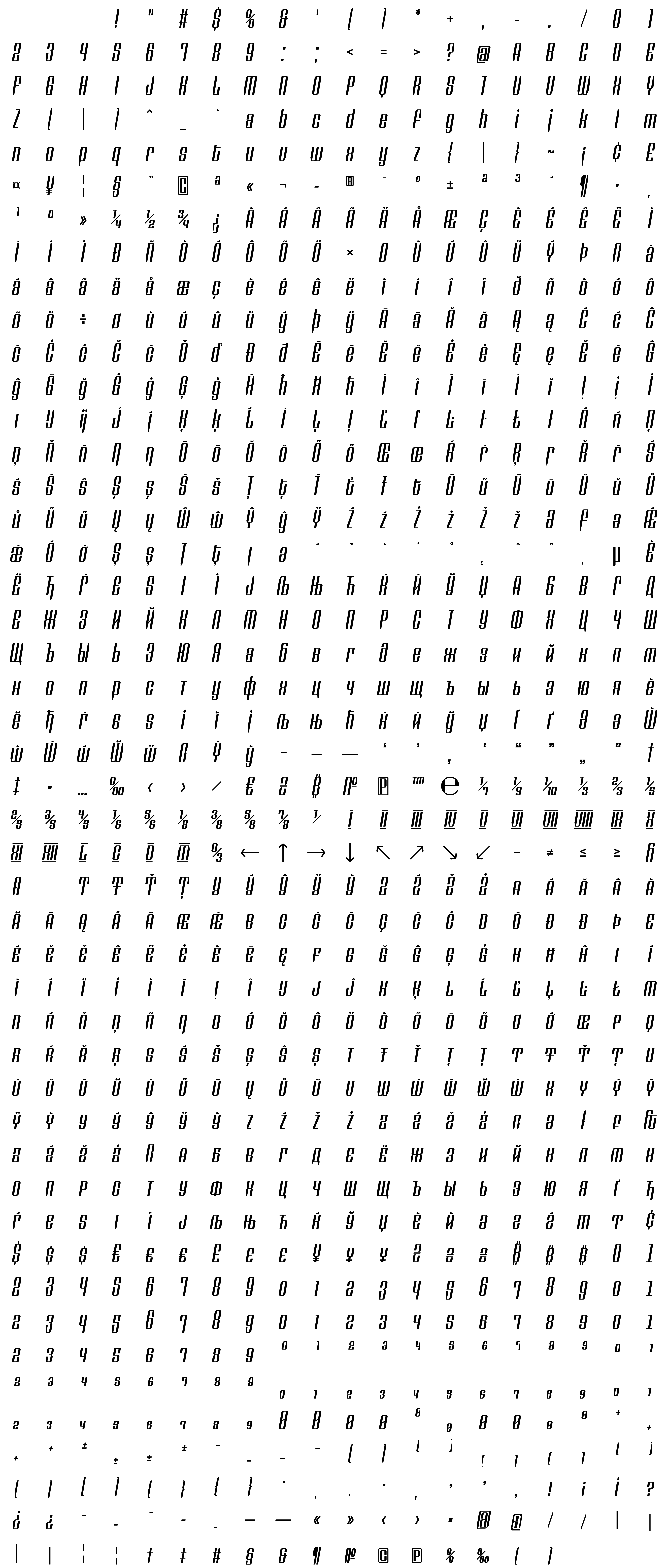 Due to the nature of thumbs' generation process, some of the glyphs in the glyph map may appear cropped.