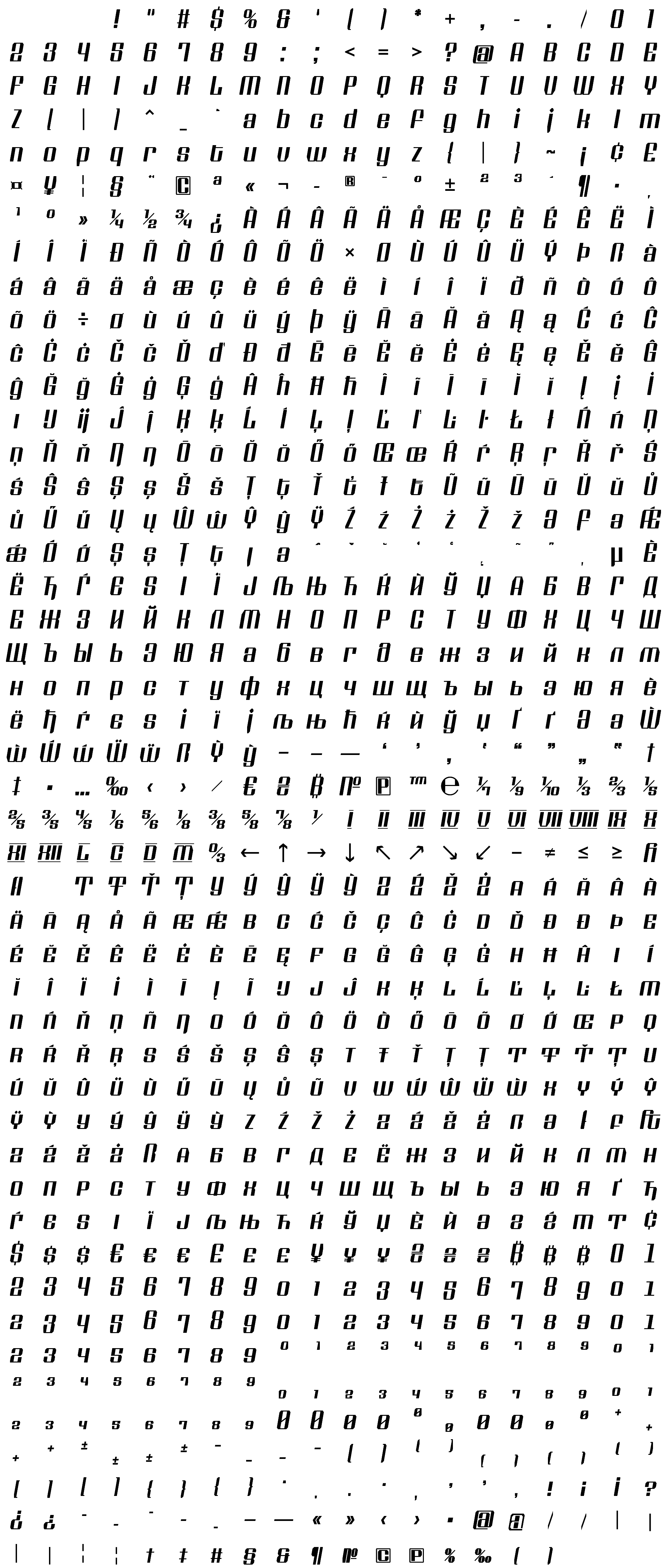 Due to the nature of thumbs' generation process, some of the glyphs in the glyph map may appear cropped.