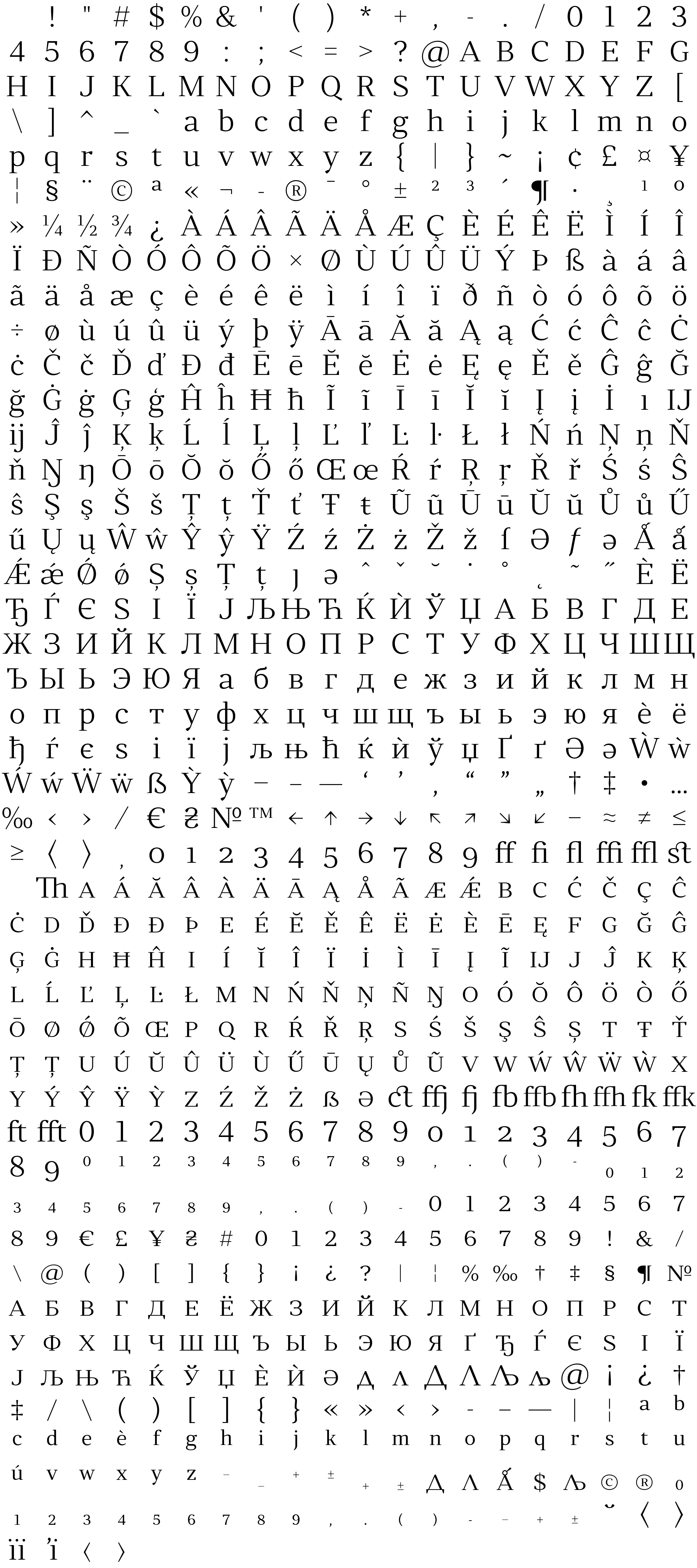Due to the nature of thumbs' generation process, some of the glyphs in the glyph map may appear cropped.