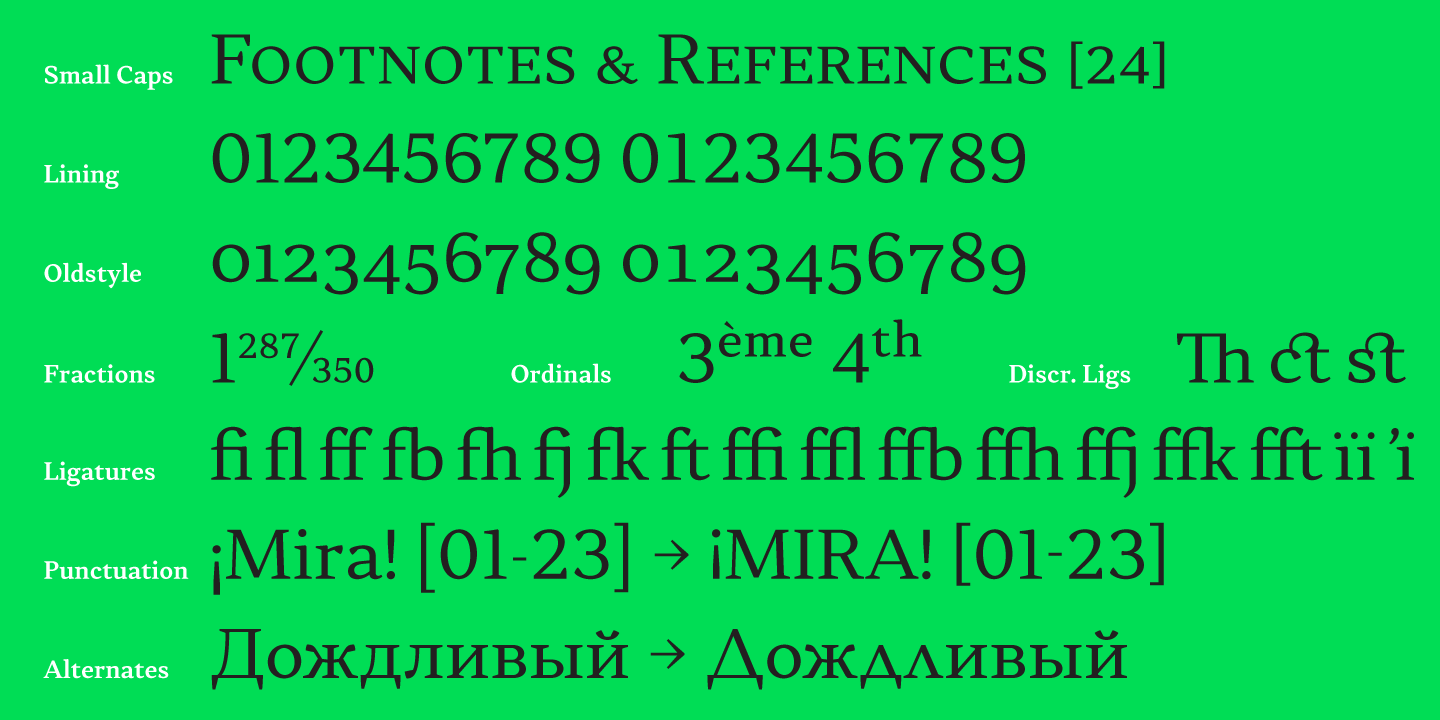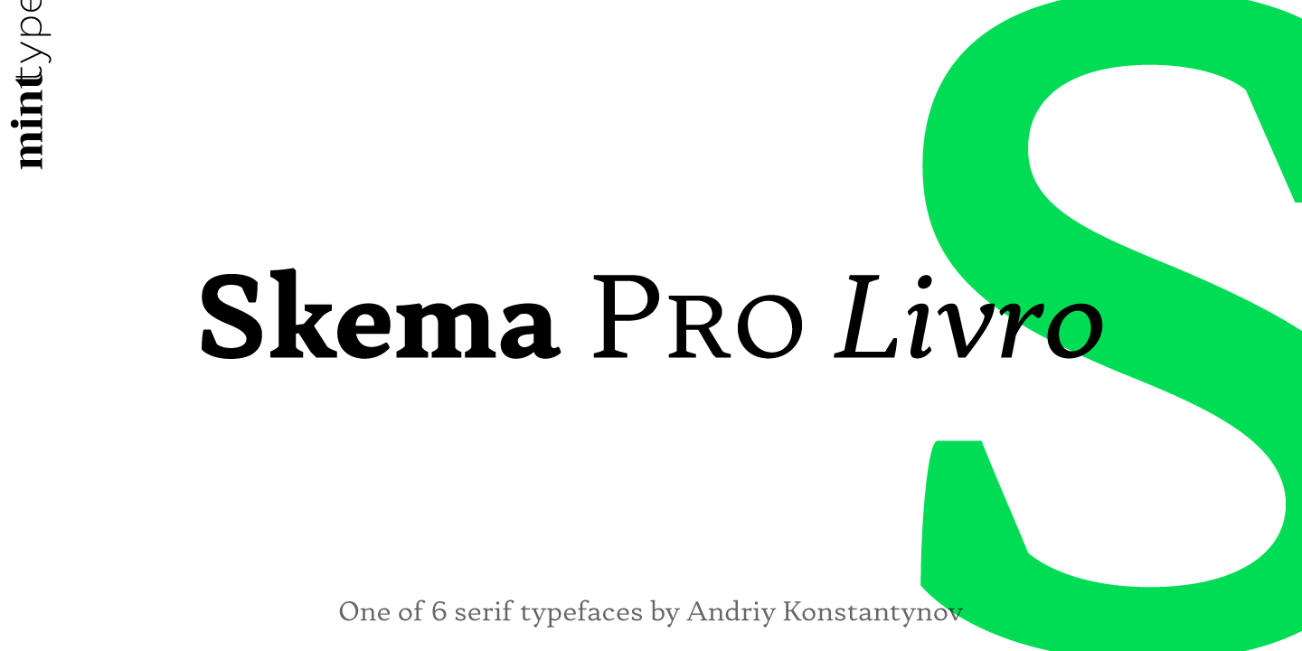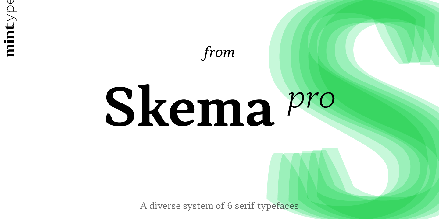 Skema Pro is a versatile system of 6 serif typefaces - each bearing a distinct character and purpose. Together they form a huge superfamily of 84 fonts to fit any imaginable task.