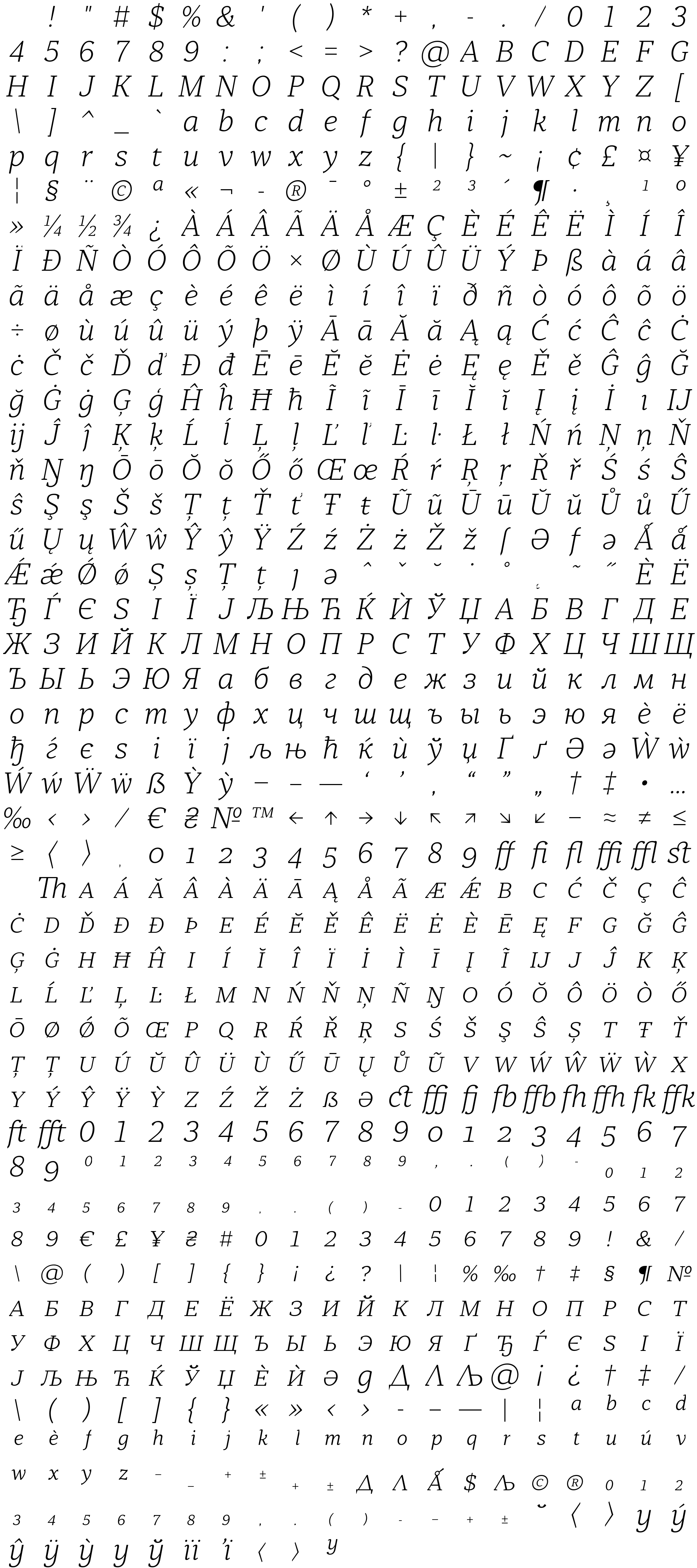 Due to the nature of thumbs' generation process, some of the glyphs in the glyph map may appear cropped.