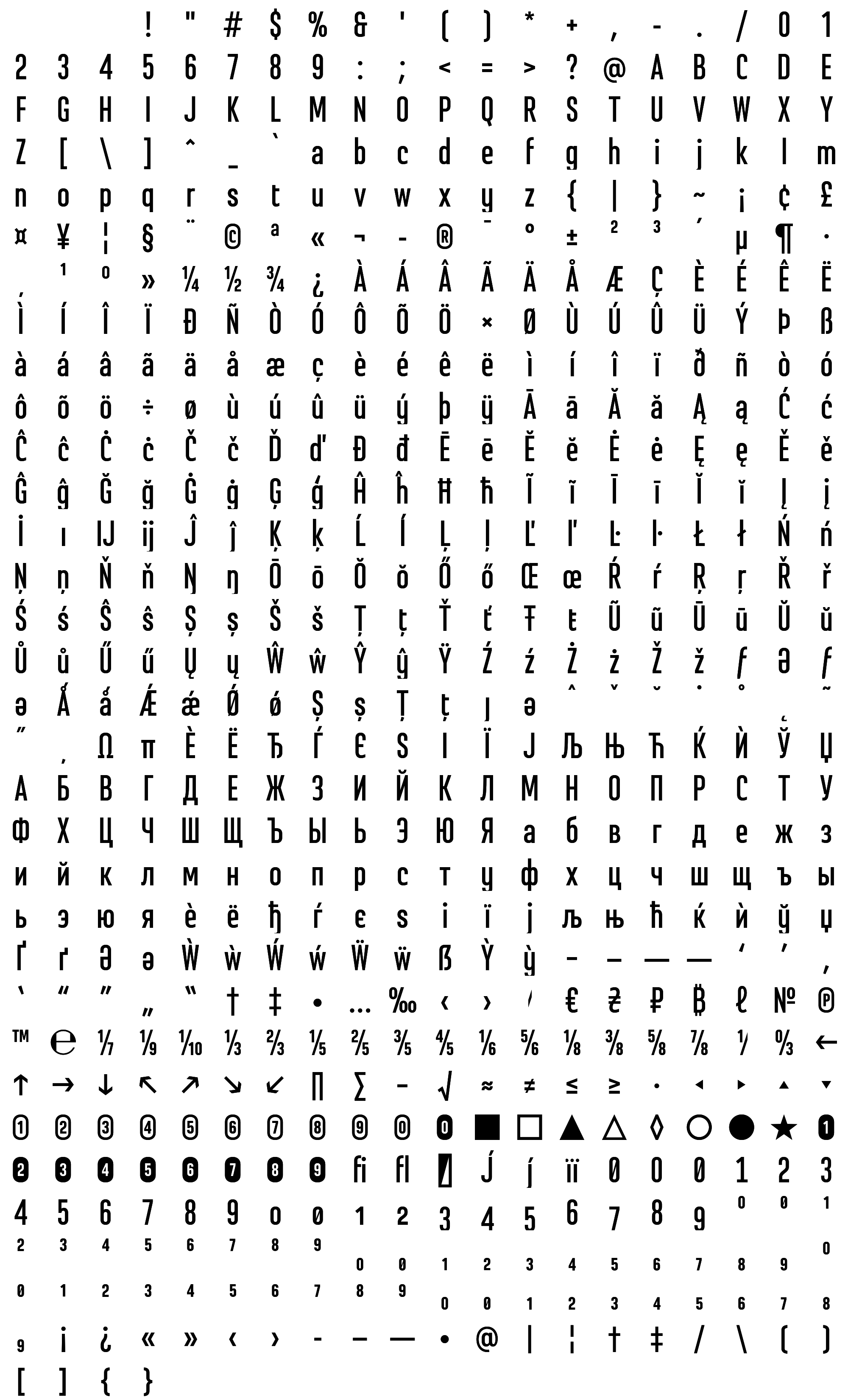 Due to the nature of thumbs' generation process, some of the glyphs in the glyph map may appear cropped.
