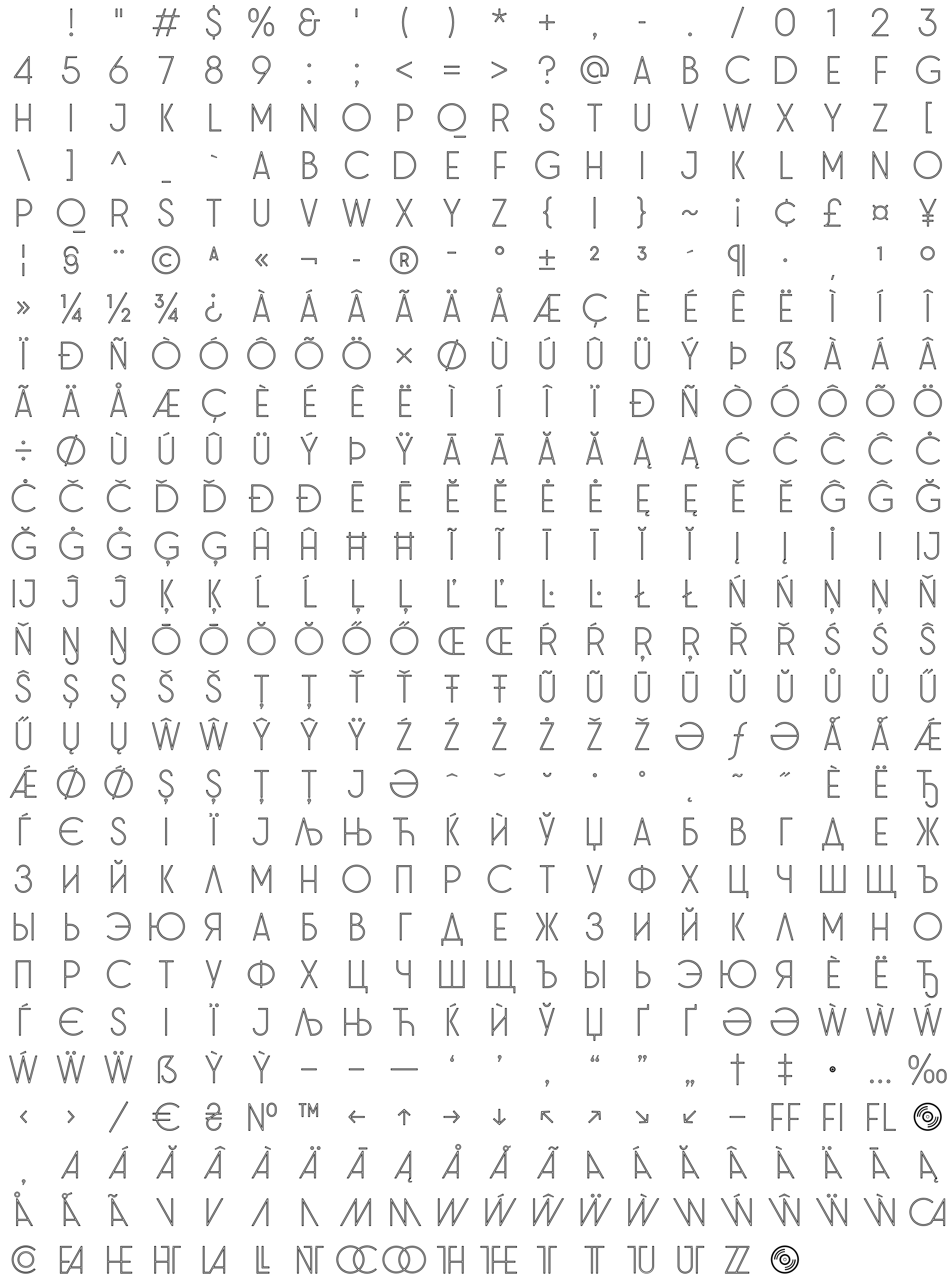 Due to the nature of thumbs' generation process, some of the glyphs in the glyph map may appear cropped.