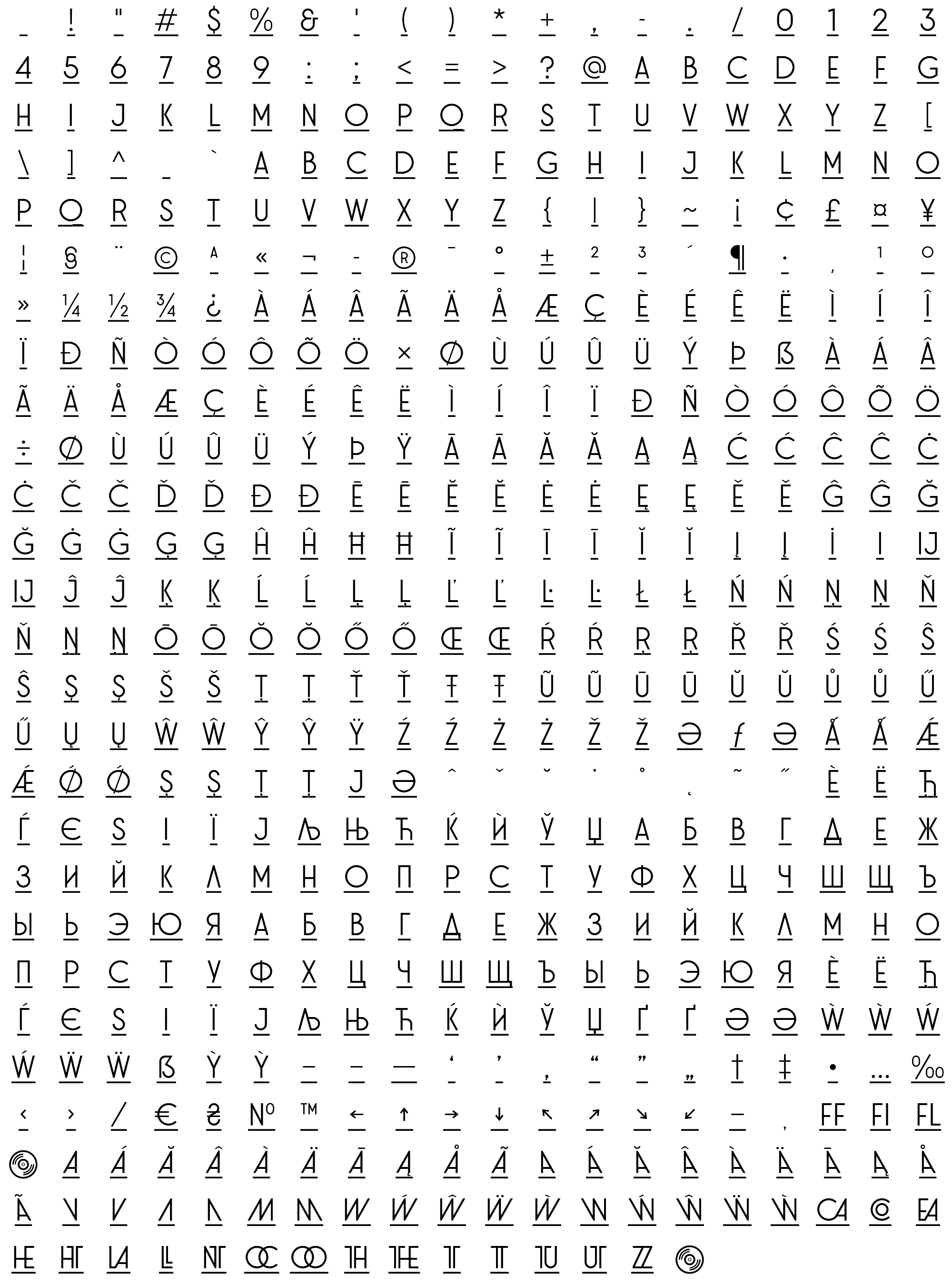 Due to the nature of thumbs' generation process, some of the glyphs in the glyph map may appear cropped.