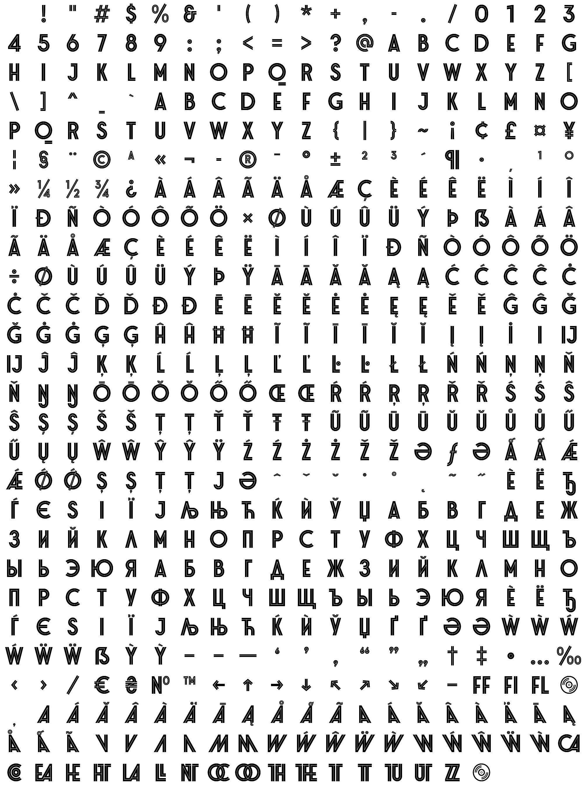 Due to the nature of thumbs' generation process, some of the glyphs in the glyph map may appear cropped.