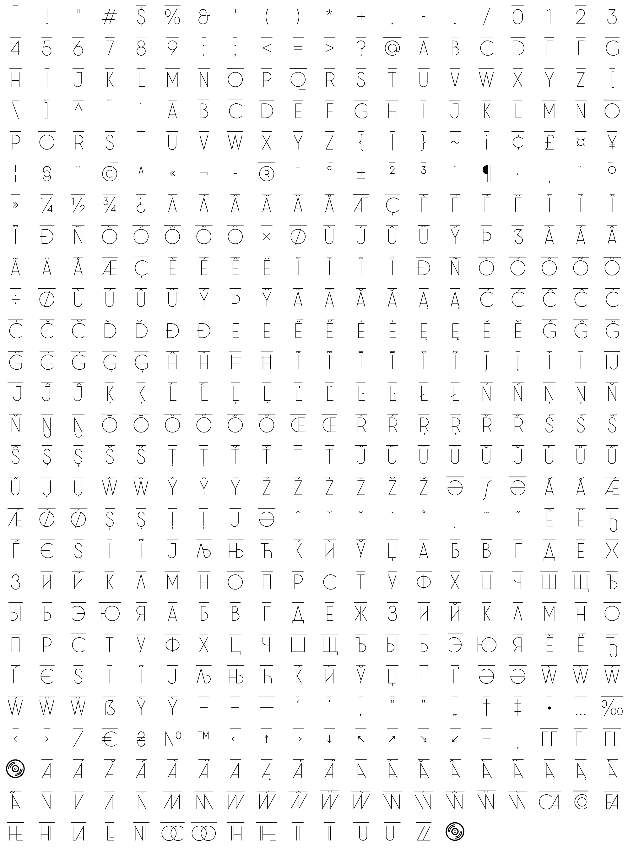 Due to the nature of thumbs' generation process, some of the glyphs in the glyph map may appear cropped.