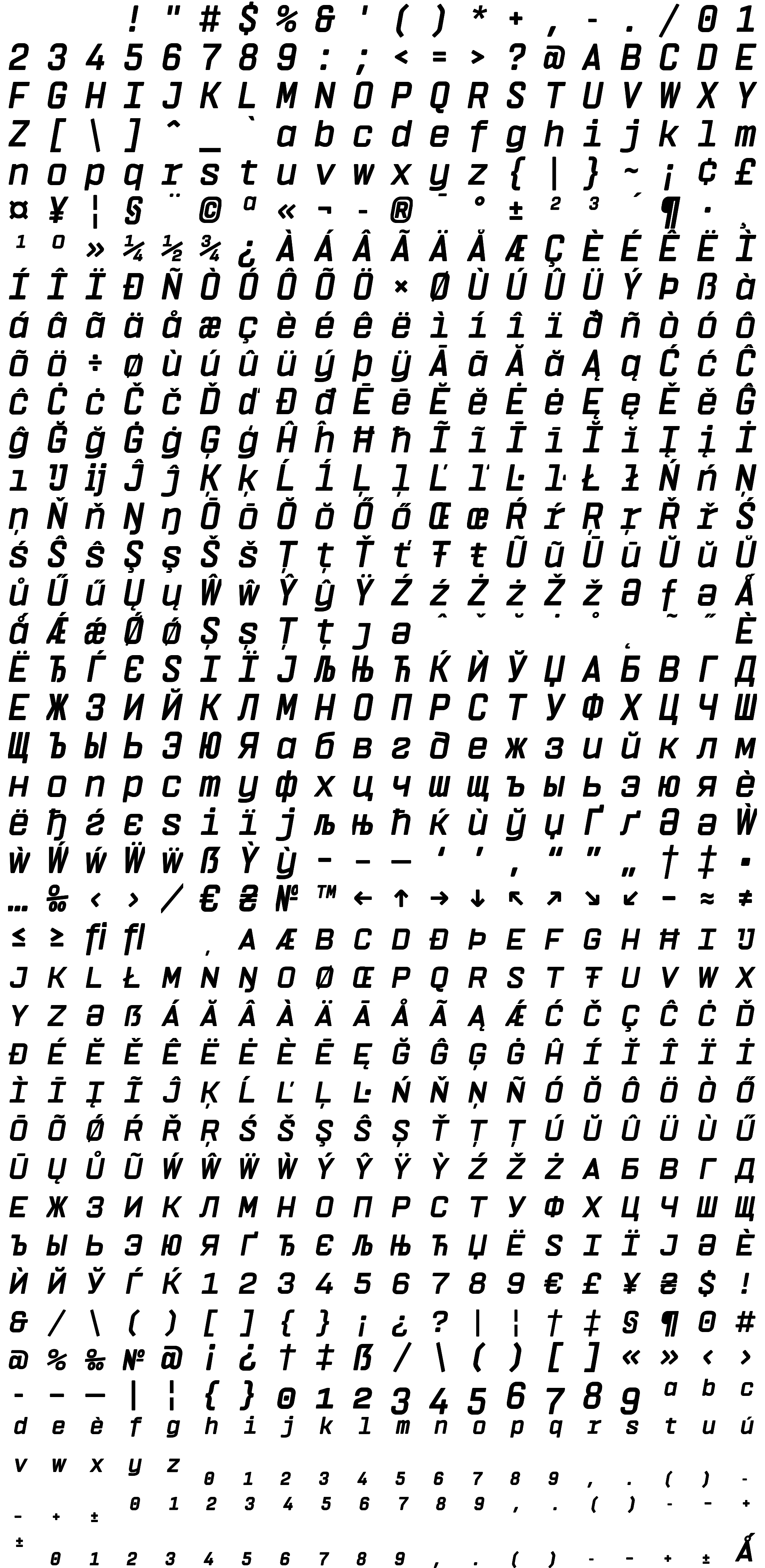 Due to the nature of thumbs' generation process, some of the glyphs in the glyph map may appear cropped.