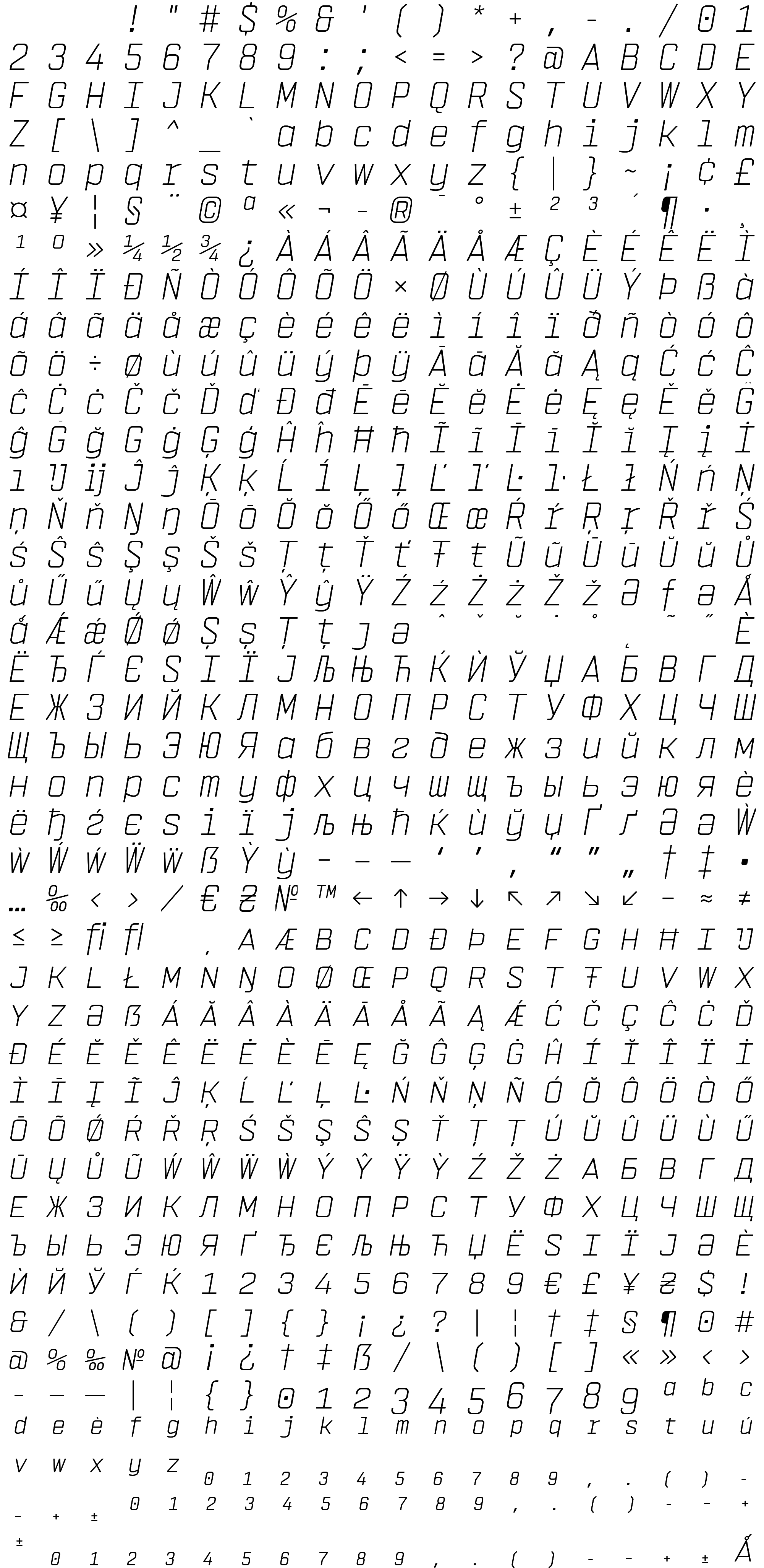 Due to the nature of thumbs' generation process, some of the glyphs in the glyph map may appear cropped.