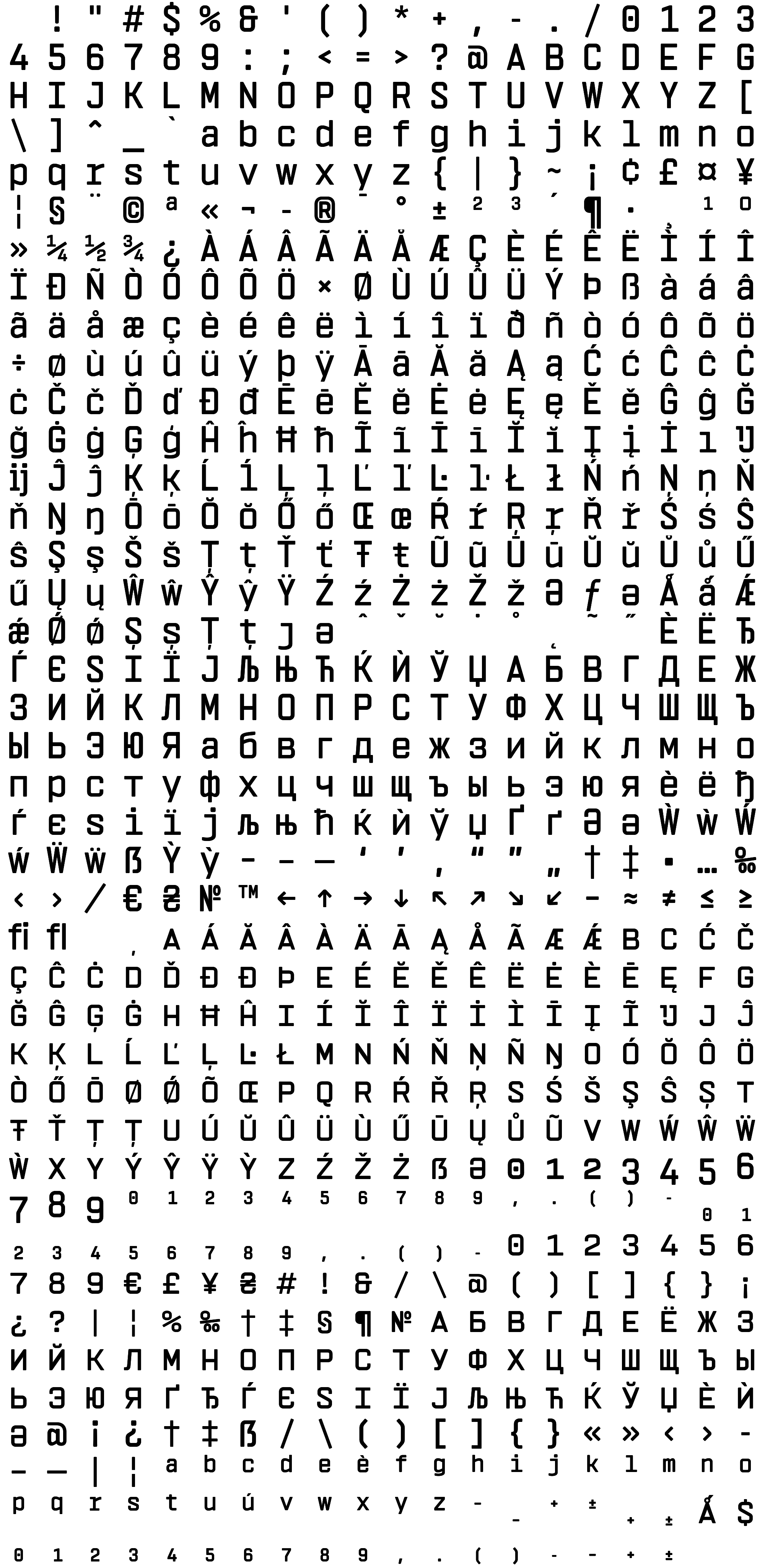 Due to the nature of thumbs' generation process, some of the glyphs in the glyph map may appear cropped.