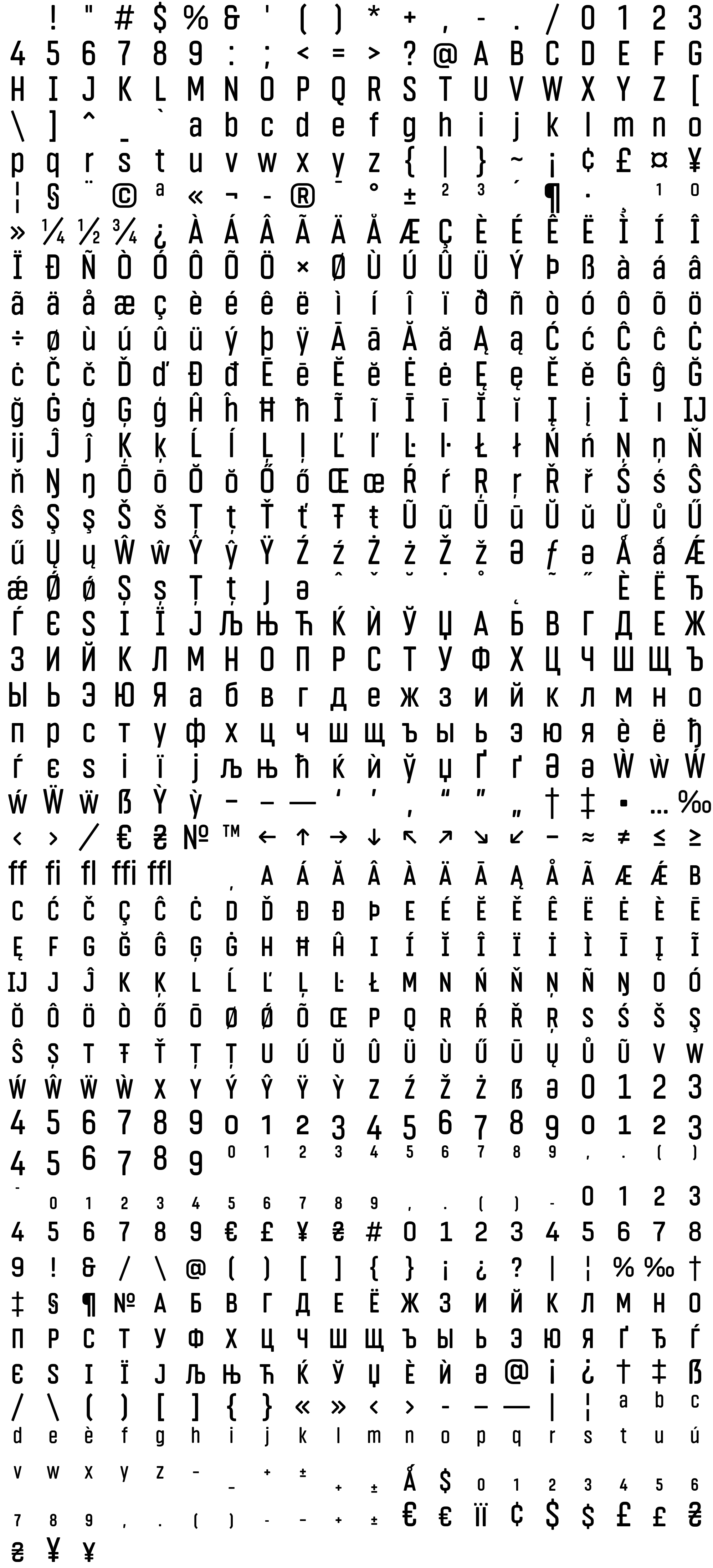 Due to the nature of thumbs' generation process, some of the glyphs in the glyph map may appear cropped.